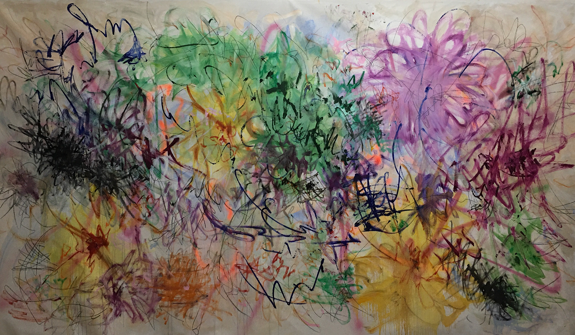 Dreamgaze, 62"x112" Oil, oil paintstik, acrylic and charcoal on Canvas, 2021